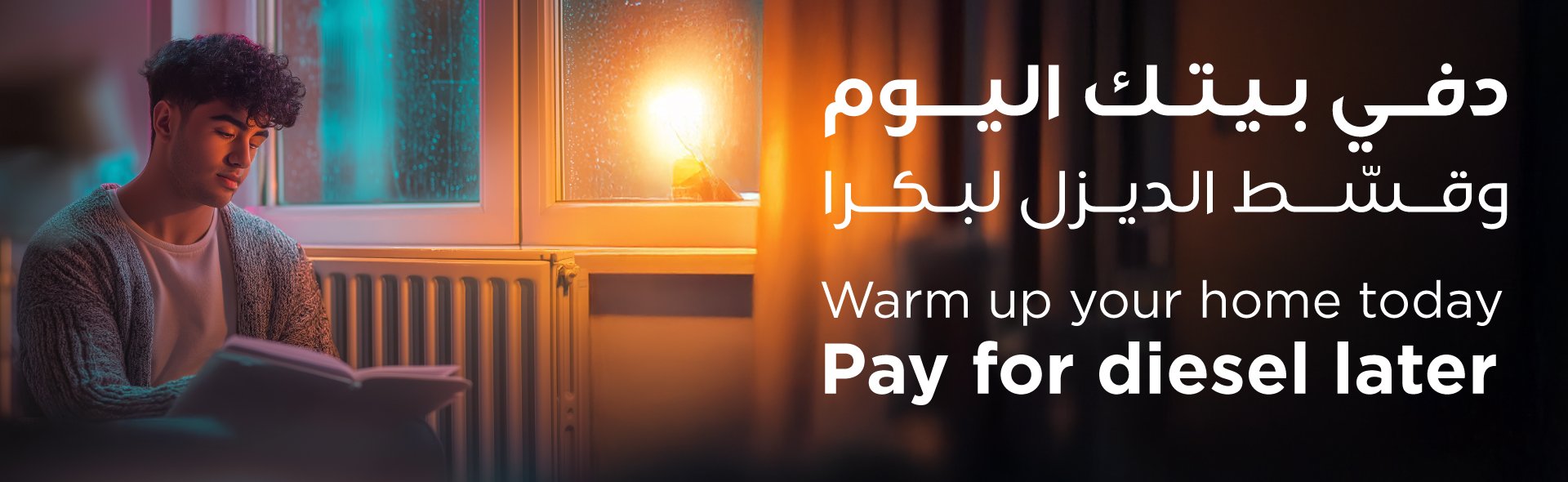 استمتع بالدفء هذا الشتاء في بيتك مع خدمة تقسيط الديزل بفائدة 0% ولغاية 12 شهراً من خلال مركز الاتصال أو الرسائل النصية عند استخدام أي من بطاقات LINC الائتمانية.
